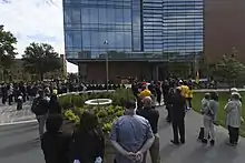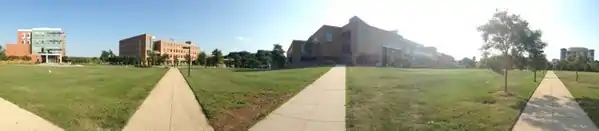 On the southern side of the Commons, a large grassy area known as the Quad is where many student events and activities take place throughout the school year. Another area of student congregation is at UC Plaza in front of the University Center. The University Center houses multiple dining options, the UC Ballroom, as well as additional university event and teaching space.[39]