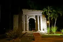 In 1918, an earthquake and a fire caused significant damage to the institution. The ruins of the entrance of one of the buildings, Degetau Hall — which not only withstood the earthquake, but proved to be almost indestructible after the rebuilt hall was torn down in the late 1940s — would later become the emblem of the institution. In 1988, the archway (the portico) was rebuilt, landscaped and turned into a monument.