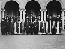 In 1910 the first teaching faculties were created. These included engineering, classics, mathematics and chemistry. In December of the same year, the senate appointed the first four professors; Bertram Dillon Steele in chemistry, John Lundie Michie in classics, Henry James Priestley in mathematics and Alexander James Gibson in engineering. In 1911 the first students enrolled.[14] The university's first classes in the Government House were held in 1911 with 83 commencing students and Sir William MacGregor is the first chancellor (with Reginald Heber Roe as vice-chancellor). The University of Queensland began to award degrees to its first group of graduating students in 1914.[15]