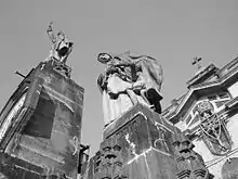 Standing on the pedestals of the fourth floor of the building are statues symbolizing the spiritual and intellectual aspiration of the University. Designed by the Italian Francesco Monti, faculty member of the College of Architecture, they were installed between 1949 and 1953.[5]