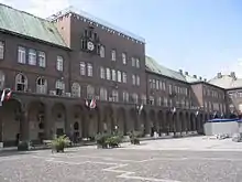 Cathedral (Hungarian: Dóm) Square is one of the largest public spaces in Hungary, with a total area of 12,000 m² (similar to that of Venice's Saint Mark's Square). In 1920, all the buildings in the vicinity were torn down, giving way to the modern square, which was built according to the designs of the architect Béla Rerrich. The square is surrounded in a U-shape by archwayed buildings made of dark brown bricks. The buildings are shared by Szeged University, the College of Catholic Theology, the Seat of the Bishop and a university dormitory. The reliefs decorating the walls were made by Béla Ohmann. After the noon chimes, a musical clock (the work of Ferenc Csuri, a master watchmaker) brings models of famous University figures to life. 86 statues of prominent Szeged University figures line the walls of the archways.