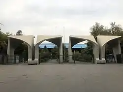 University of Tehran main entrance was designed in 1965 by Korosh Farzami, one of the students of the faculty of Fine Arts of the university. The structural engineer was an Armenian-Iranian by the name of Simon Sarkissian. Due to the importance of the university, these gates have gradually become the symbol of Iran's Higher Education system. University of Tehran gates are depicted on the reverse of the Iranian 500 rials banknote.[17]