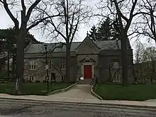 The university also manages several residences outside the central campus. The official residence of the University President, Gibbons Lodge, is off-campus. Completed in 1932, the Tudor Revival-styled house is north of Western's central campus. It was acquired by the university in 1960.[50] In addition to Gibbons Lodge, the university also maintains Platt's Lane Estates, a complex of townhouses and apartments south of the University's campus. The complex was designed to accommodate upper-year, graduate, and students with families.[51]
