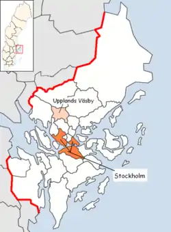 Upplands Väsby Municipality (Upplands Väsby kommun) is a municipality in Stockholm County in east central Sweden, with a population of 38,963 (2010). Its seat is located in the town of Upplands Väsby.