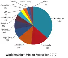 - "World Uranium Mining Production". World Uranium Association. July 2013. Retrieved 2013-11-19.