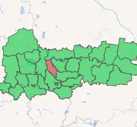 Ust-Kubinsky District (Russian: Усть-Ку́бинский райо́н) is an administrative[1] and municipal[7] district (raion), one of the twenty-six in Vologda Oblast, Russia. It is located in the center of the oblast and borders with Vozhegodsky District in the north, Kharovsky District in the northeast, Sokolsky District in the southeast, Vologodsky District in the southwest, and with Kirillovsky District in the west. The area of the district is 2,400 square kilometers (930 sq mi).[4] Its administrative center is the rural locality (a selo) of Ustye.[3] District's population: 8,094 (2010 Census);[5] 9,350 (2002 Census);[9] 11,280 (1989 Census).[10] The population of Ustye accounts for 48.7% of the district's population.[5]