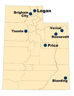 Utah State University Uintah Basin Regional Campus is a part of the Utah State University (USU) Regional Campuses and Distance Education system located in Roosevelt, Utah, with an additional campus in Vernal. The Uintah Basin campus was the first USU regional campus.[2] USU-Uintah Basin offers five associate's, 20 bachelor's and 16 master's degrees, as well as certificate programs and a Doctor of Education program.