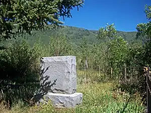 The city's annual Decoration Day (now Memorial Day) ceremonies were held at the cemetery. This led to some occasional efforts to maintain the cemetery, most significantly in 1886. By 1888 two competing railroad lines had reached Aspen, giving mourners access to the kind of cut stone that could make fancier grave markers. The following year Aspen Grove Cemetery opened on the slopes below Smuggler Mountain. It was perhaps harder to reach but offered a more planned, rural cemetery atmosphere with planted aspens in rows and a carriage access road with turnaround and became the burial ground preferred by middle-class and wealthy citizens. The less affluent, and miners with no local family, continued to be buried in Ute.[1]