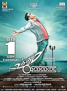 The official track list was released by Sony Music on 28 February 2015.[61] It was revealed that the soundtrack album will be released with 17 tracks including seven themes from the score.[62] The soundtrack release was held at Chennai Trade Centre on 1 March 2015. It was released on an app, instead of conventional CDs.[63] Attakalari dance artists from Bengaluru, performed at the event.[64] Besides the entire cast and crew, several prominent film personalities including Rajkiran, Rajkumar Sethupathi, Snehan, Santhana Bharathi, Vikram Prabhu, Keyaar, Dhananjayan, Vijay Shankar, K. S. Ravikumar, Moulee, S. A. Chandrasekar, A. M. Rathnam, Vijay Sethupathi, Sanchita Shetty, Rohini, Madhan Karky, Ponram, Rahman and Fivestar Kathiresan were present at the event, which was hosted by R. Parthiban.[65] The audio launch event was telecasted through Jaya TV, on 22 March 2015.[66]