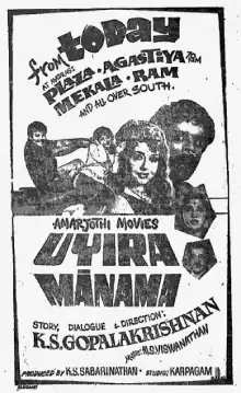 Uyira Maanama (transl. Life or Reputation?) is a 1968 Indian Tamil-language film written and directed by K. S. Gopalakrishnan. The film stars Jaishankar, Vijaya Nirmala, R. Muthuraman and Krishna Kumari. It was released on 21 October 1968 (Diwali day), and was commercially successful.