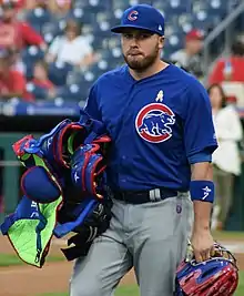 On July 31, the Braves traded Caratini to the Chicago Cubs for Emilio Bonifacio and James Russell.[2][3][4] The Cubs sent him to the Kane County Cougars, where he finished the season.[5][6] Caratini spent the 2015 season with the Myrtle Beach Pelicans where he batted .257, with 4 home runs and 53 RBI's. He spent the 2016 season with the Tennessee Smokies, where be batted .291 with 6 homers and 47 RBI's.[7] After the 2016 season, Caratini played for the Mesa Solar Sox of the Arizona Fall League and was added to the Cubs 40-man roster.[8]