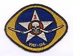 Marine Fighter Attack Squadron 124 (VMFA-124) was a flying squadron in the Marine Forces Reserve based out of Naval Air Station Memphis flying the A-4 Skyhawk. They were part of Marine Aircraft Group 42 and were decommissioned on 19 June 1999. The squadron is best known as the first Marine squadron to fly the F4U Corsair during World War II and also the first squadron to be based on an aircraft carrier. They were known as the “Wild Aces” and ended World War II with 78 air-to-air victories against Japanese aircraft.