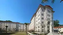 The school that would become Valdosta State University was founded in 1906. Colonel W.S. West led the legislation through the Georgia Senate, and C.R. Ashley and E.J. McRee pushed it through the House. However, no funds were appropriated for it until 1911 when the state allocated $25,000. The city of Valdosta raised $50,000, and Col. West gave the property that is now the main part of campus to the state for use by the new institution. The president chosen was Richard Holmes Powell. His travels in the American southwest led him to choose the Spanish Mission style of architecture for the institution's buildings.[4] The school opened as South Georgia State Normal College (SGSNC) in January 1913, with three college freshmen and 15 sub freshmen. The early students were required to wear a school uniform and paid $10 per year for tuition and $12 per month for food and board. Most came to be teachers and studied subjects from literature to physics to agriculture. In 1922, the school became a four-year college and the legislature changed the name to Georgia State Women's College