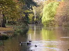 Valentines Park is a 52-hectare (130-acre) park, south of Gants Hill, it is the largest green space in the London Borough of Redbridge.[2] The park was originally the grounds of Valentines Mansion, a residence built in 1696.[3] Valentines Park holds a Green Flag Award and was voted one of the ten best parks in Britain in 2019.[4]