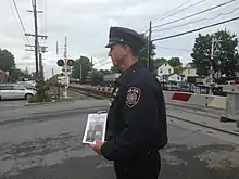 Enforcement efforts supplemented the education and public outreach. The MTA police worked with local law enforcement to create a Right of Way Task Force. Officers primarily handed out pamphlets to drivers, pedestrians and train passengers at the many grade crossings in the metropolitan area, but also went as far as issuing summonses to violators, even arresting five, by November 2016.[13]:58–61