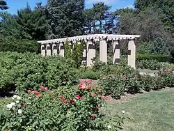 In 1885 the city of Davenport acquired the property that had been the Scott County Fairgrounds. It is a significant example of landscape planning, and of the civic improvements that were being made by the city in the late 19th and early 20th centuries.[2] Five years after the land was purchased and improved it was named Central Park after New York City's park of the same name.[3] Like its namesake it featured naturalistic landscaping, a glasshouse, floral gardens, a large pond, picnic pavilion, and a picturesque bridge. Central Park was the first major park established by the City of Davenport. The year that it opened the city established the Board of Parks Commissioners. They acquired other properties and established residential parks similar to Central Park. The parks included both Lookout Park, later renamed Riverview Terrace, and Prospect Park that were brought into the city's system in 1894. Fejervary Park was acquired in 1902. Other major projects in the city's beautification program included riverfront improvement that created LeClaire Park and included the W.D. Petersen Memorial Music Pavilion, Dillon Fountain, and Union Station between 1911 and 1931.