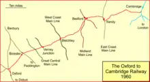 The Oxford to Cambridge line, when completed, ran broadly west to east. In the early days there were five intersecting trunk lines running south to north: