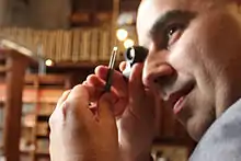 ![]() Dominguez inspecting a diamond | |