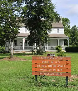 Vaughn's Stage Coach Stop is a historic stagecoach stop located near Ridgeway, Fairfield County, South Carolina. It was built about 1820, and is a two-story, weatherboarded frame, gable-roofed residence with a double-pile and central hall floor plan. The building sits on a foundation of stone piers, has end chimneys, rear shed rooms, and a left rear addition. The façade features a one-story, shed-roofed porch with a plain wooden balustrade supported by six slender wooden posts.[2][3]