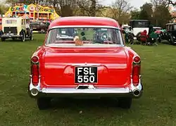 The more cleanly styled FB announced 14 September 1960[13] ran until 1964 with a substantial improvement regarding rust protection. Quite in contrast to its "junky" predecessor, it was considered a solidly built, well-proportioned vehicle. It was widely exported, although sales in the US ended after 1961 when Pontiac, Oldsmobile and Buick came up with home-grown compact models of their own, with the all-new GM "Y" platform (North America). Consequently, the FB only achieved sales of 328,000 vehicles by the time it was replaced in 1964. The body styling owed nothing to any US GM influence, the flat front and turtle-deck rear resembling some older US Fords. Mechanically, the main change was the option of a 4-speed all-synchromesh transmission with floor change but the previously used 3-speed all-synchro column change unit was still fitted as standard. The base (FBY) engine was also revised with higher compression ratio and revised manifolding increasing the power output to 49.5 bhp (37 kW; 50 PS). In September 1963 the engine was enlarged from 1508 to 1594 cc, identified as the FB30.[14] The increased capacity coincided with a further increase in the compression ratio of the standard engine from 8.1:1 to 8.5:1, reflecting the continuing increase the average octane level of "premium grade" fuel (on which the Victor unit had by now standardised) offered in the UK, now to 97 (RON).[9] 1963 was also the year when front disc brakes with larger 14 in (360 mm) wheels became an option. Models with the larger engine had a revised frontal treatment with a block style grille element and revised parking lights at either lower extreme of the grille.