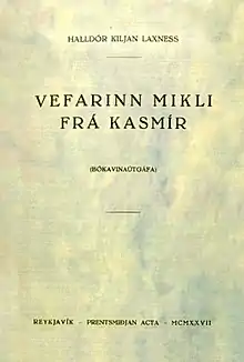 Vefarinn mikli frá Kasmír (The Great Weaver from Kashmir) is the third novel by Halldór Kiljan Laxness, published in 1927 by the Reykjavík publisher Forlagið. The theme of the work is a young man's soul and search for truth, faith and love, and his choice between love and faith. It is particularly noted as the seminal modernist novel in Icelandic.[1]