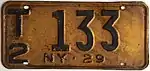 1929 | Embossed black serial on golden yellow plate; "NY·29" centered at bottom | none | A/1 12-34 A/ 12-34 |