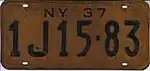 1937 | Embossed black serial on golden yellow plate; "NY 37" centered at top | none | A-12-34 1A12-34 |