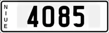 Niue requires its residents to register their motor vehicles and display vehicle registration plates.[1] Current plates are New Zealand standard 360 mm × 125 mm, smaller in height and width than Australian plates,[2] and use New Zealand stamping dies, as zeroes now have a slash through them (e.g. 52Ø9).