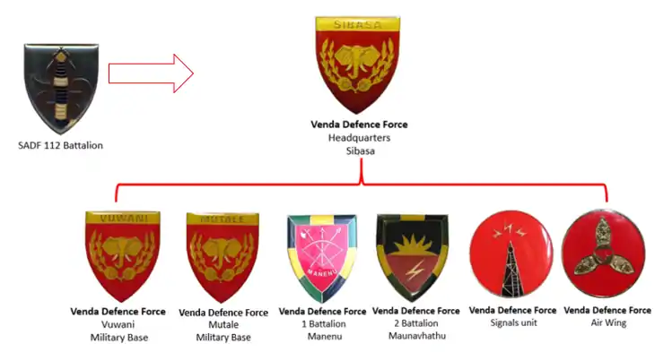 The Venda Defence Force (VDF) was established in September 1982 from the 112 Battalion of the South African Defence Force and the military branch of the Venda National Force which itself had been formed when the Venda homeland became independent from South Africa in September 1979.