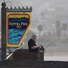 Ventura Pier was built in 1872 at a cost of $45,000 and was the longest wooden Pier in California. In 1914 a ship severed the pier. It was rebuilt to a length of 1,700 feet (520 m) by 1917. An active wharf for 64 years, it was reinforced with steel pilings after 420 feet (130 m) of the pier was destroyed by a storm in 1995.[25][26][27][28]