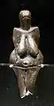 It has a height of 111 millimetres (4.4 in), and a width of 43 millimetres (1.7 in) at its widest point and is made of a clay body fired at a relatively low temperature (500 °C - 800 °C).[2] The statuette follows the general morphology of the other Venus figurines: exceptionally large breasts, belly and hips, perhaps symbols of fertility, relatively small head and little detail on the rest of the body.