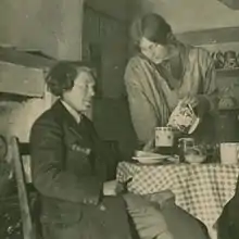 Holme had met Haverfield before the war, and they were companions from 1911 until Haverfield's death in 1920.[1] Although during 1919 she was living in Kirkcudbright where she had an affair with the artist Dorothy Johnstone,[10] Holme was left £50 a year for life by Haverfield. In the 1920s, she spent time with Christabel Marshall's ménage à trois partners, Edith Craig and Clare Atwood.[9] She was known throughout her life for adoption of masculine dress and mannerisms, well documented in the photographs held in her archive.[11][12]