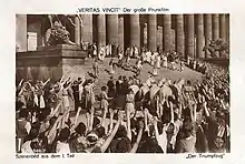 Veritas Vincit is a 1919 German silent historical film directed by Joe May and starring Mia May, Johannes Riemann, and Magnus Stifter. It was made as an epic in three episodes, similar to D. W. Griffith's Intolerance.[1] The first takes place in Ancient Rome, the second during the Renaissance and the third shortly before the First World War. Although not released until Spring 1919, it had been made during the final months of the war the previous year.