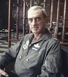 From Clark AB, Garrison was assigned as vice commander of the 8th Tactical Fighter Wing at Ubon Royal Thai Air Force Base, Thailand, in August 1966.[1] The following month Col. Robin Olds was made commander of the 8th TFW to invigorate its combat spirit,[29] and together with deputy commander of operations Col. Daniel "Chappie" James and Garrison, provided one of the strongest and most experienced command triumvirates in Southeast Asia. Garrison flew the F-4C Phantom II on 97 missions over North Vietnam and Laos, although Olds noted that Garrison never formally "checked out" (qualified) in the type, as a result of which he always flew with an instructor pilot in the rear seat.[30] In describing Garrison's combat experience, Olds observed that Garrison flew his "52nd combat mission on his 52nd birthday" while at Ubon.[31][n 10] Olds also noted that by 1967 Garrison was: