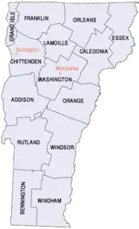 The table below describes the 6 United States statistical areas and 14 counties of the State of Vermont with the following information:[5]