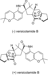 - Miller KA, Tsukamoto S, Williams RM (April 2009). "Asymmetric total syntheses of (+)-and (−)-versicolamide B and biosynthetic implications". Nature Chemistry. 1 (1): 63–68. doi:10.1038/nchem.110. PMC 2840645. PMID 20300443.