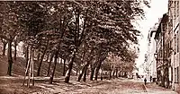 Vester Voldgade was originally a narrow alley which ran along the inner margin of Copenhagen's West Rampart, part of the Bastioned Fortification Ring which enclosed Copenhagen. The city's haymarket was located at the site of the current City Hall Square until the New Haymarket was inaugurated on 1 January 1888. The section from the haymarket to the harbour was originally known as Filosofgangen (English: Philosopher's Path). That section of the ramparts was one of the last to be decommissioned, surviving until 1885.[1] Lange Bridge was located at the far end of the street until 1903 when it was moved to the end of Vestre Boulevard (now H. C. Andersens Boulevard).