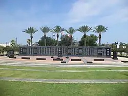The Veterans Memorial Wall is located at 1145 East Adams Street, adjacent to the Jacksonville Municipal Stadium in downtown Jacksonville, Florida. The quarter-million dollar monument was dedicated in November, 1995 and serves as a tribute to more than 1,500 Jacksonville area American war heroes. The outdoor memorial was promoted as "the largest of its kind" and "the only wall that honors veterans from all six [service] branches" (Army, Navy, Marines, Air Force, Coast Guard and Merchant Marine).[1] The 65 foot-long black granite monument contains the names of servicemen and women from World War I through Operation Desert Storm and the current war on terrorism. In front of the wall stands a torch with an eternal flame.