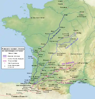 - the via Lemovicensis, leaving from Vézelay, passing through Limoges