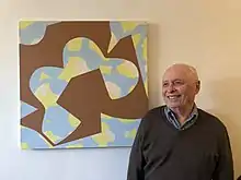 ![]() Victor Kord and a painting from 'Making Ends Meet: New Works, 2019' at June Kelly Gallery | |