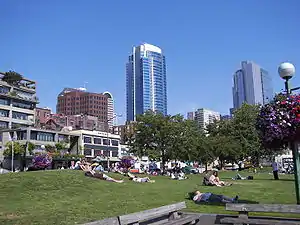 Victor Steinbrueck Park is a 0.8 acre (3,000 m²) park in Downtown Seattle, Washington, United States, located just northwest of Pike Place Market overlooking Elliott Bay. Named for the Seattle-based architect Victor Steinbrueck, it is positioned between Western Avenue and the Alaskan Way Viaduct at the foot of Virginia Street.