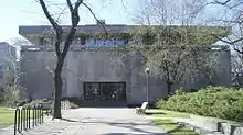 Built in 1961 and located at the south end of the quadrangle, the E.J. Pratt Library the main library of Victoria University, with some 250,000 volumes. The collection is geared towards the undergraduates and contains mainly humanities texts with a focus on History, English, and Philosophy. The site of the library and the adjacent Northrop Frye Building was originally on the route of Queen's Park Crescent. The road was pushed south into Queen's Park to make way for the new buildings.