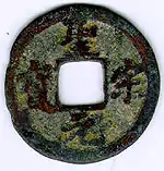 The first Vietnamese coins were cast under the rule of the Đinh Dynasty (968–981) with the introduction of the Thái Bình Hưng Bảo (太平興寶) under Đinh Bộ Lĩnh.[11] Though for the next 2 centuries coins would remain a rarity in the daily lives of the common people as barter would remain the dominant means of exchange under both the Đinh and Early Lê dynasties.[12]