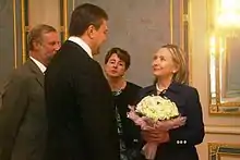 Patriarch Kirill of Moscow and All Rus at Yanukovych's invitation conducted a public prayer service at Kyiv Pechersk Lavra before Yanukovych's presidential inauguration.[66] Patriarch Kirill also attended the inauguration[67] along with High Representative of the Union for Foreign Affairs and Security Policy Catherine Ashton, United States National Security Advisor James Jones and speaker of the Russian parliament Boris Gryzlov.[68][69]