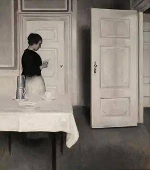 pronunciation ), often written in English Vilhelm Hammershoi (15 May 1864 – 13 February 1916), was a Danish painter. He is known for his poetic, subdued portraits and interiors.[1]