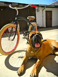 In 2006 Hicks discovered beach cruiser bike riding on Venice Beach while in Los Angeles on a business trip. After renting a beach cruiser for a scheduled one-hour ride, he brought the rental back 6 hours later and was hooked;[4] relishing the simplicity, comfort and style of the bike and the fact that you could wear street clothes and look stylish riding. Two years later, Villy Custom was founded in 2008 and began as a brick and mortar retail store (selected by Daily Candy as “Sweetest Things” 2009)[5] specializing in sales of Felt Cruisers, Hawk Classic Cruiser bikes, specialty accessories and apparel. After experimenting with minor bike customization, Hicks soon realized he could infuse fashion, texture and unique color combinations to create a customizable luxury fashion bicycle company. The Icon of the Brand is the owner's Bullmastiff dog, named DeVille. The Brand is known for its unexpected product features, such as powder coated handlebars, neck stems, seat post, seat post clamps, fender braces, seat hardware, and wheels in a multitude of colors.[6]