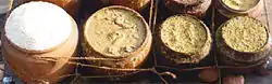 Generally, no separate food offerings are cooked for the goddess Vimala. The goddess is described to survive on the remnants (Uchchhishta) of Jagannath's meals.[1] The vegetarian food offerings to Jagannath are offered to Vimala, after which they are sanctified as Mahaprasad (see also prasad). The Mahaprasad consists of dried rice mixed with grated coconut, cheese, curd and butter.[19][1] The Shankaracharya, head of the Govardhana matha, receives a pot of the mahaprasad and a plate of khichdi that is offered to the goddess, the presiding goddess (Adya-shakti) of the matha as well as of the temple.[20]
