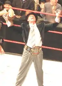 McMahon returned on the November 3, 2014, episode of Raw, making a stipulation that if Team Cena had defeated Team Authority at Survivor Series, The Authority would be removed from power.[93] Team Cena won the match, but McMahon gave John Cena the option to reinstate The Authority. McMahon returned on the December 14, 2015, episode of Raw, aligning himself with The Authority, by confronting Roman Reigns over his attack on Triple H at the TLC pay-per-view. McMahon granted Reigns a rematch for the WWE World Heavyweight Championship against Sheamus, with the stipulation that if he failed to win the championship he would be fired. During the match, McMahon interfered on Sheamus' behalf but was attacked by Reigns, who then pinned Sheamus to win the WWE World Heavyweight Championship. On the December 28 episode of Raw,[94] McMahon was arrested for assaulting an NYPD officer and resisting arrest after a confrontation with Roman Reigns.[95] McMahon made himself special guest referee in Reigns' rematch against Sheamus on the January 4, 2016 episode of Raw, where Reigns won after McMahon was knocked out and another referee made the decision.[96] With his plan foiled, McMahon retaliated by announcing after the match that Reigns would defend his title at the Royal Rumble against 29 other men in the Royal Rumble match,[97] which was won by Triple H.[98]