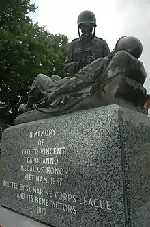 Vincent Robert Capodanno Jr. (February 13, 1929 – September 4, 1967) was a Roman Catholic priest and Maryknoll Missioner (M.M.) who was killed in action while serving as a United States Navy chaplain assigned to a Marine Corps infantry unit during the Vietnam War. He was a posthumous recipient of America's highest military decoration, the Medal of Honor, for heroic actions above and beyond the call of duty. The Catholic Church has declared him a Servant of God, the first of the four stages toward possible sainthood.