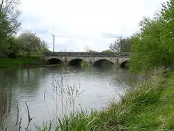Rue du Moulin bridge over the canal at Cheuge. The river is about 50 metres (160 ft) from the canal here.